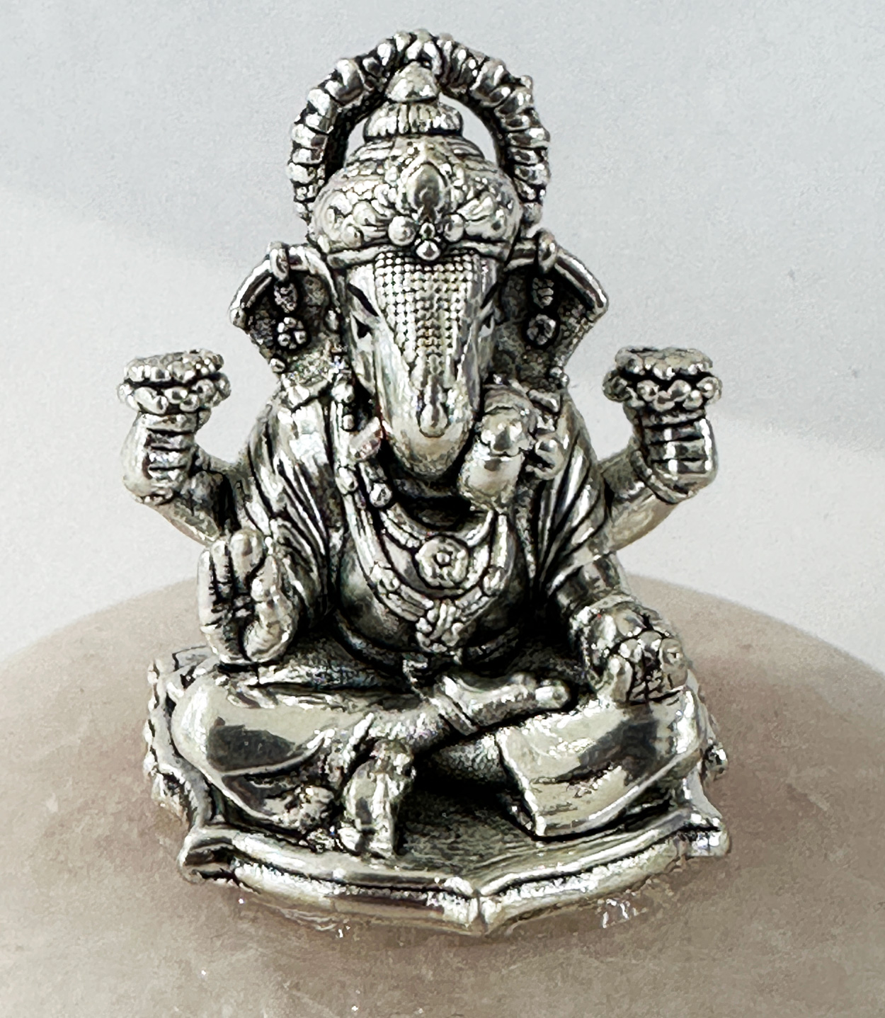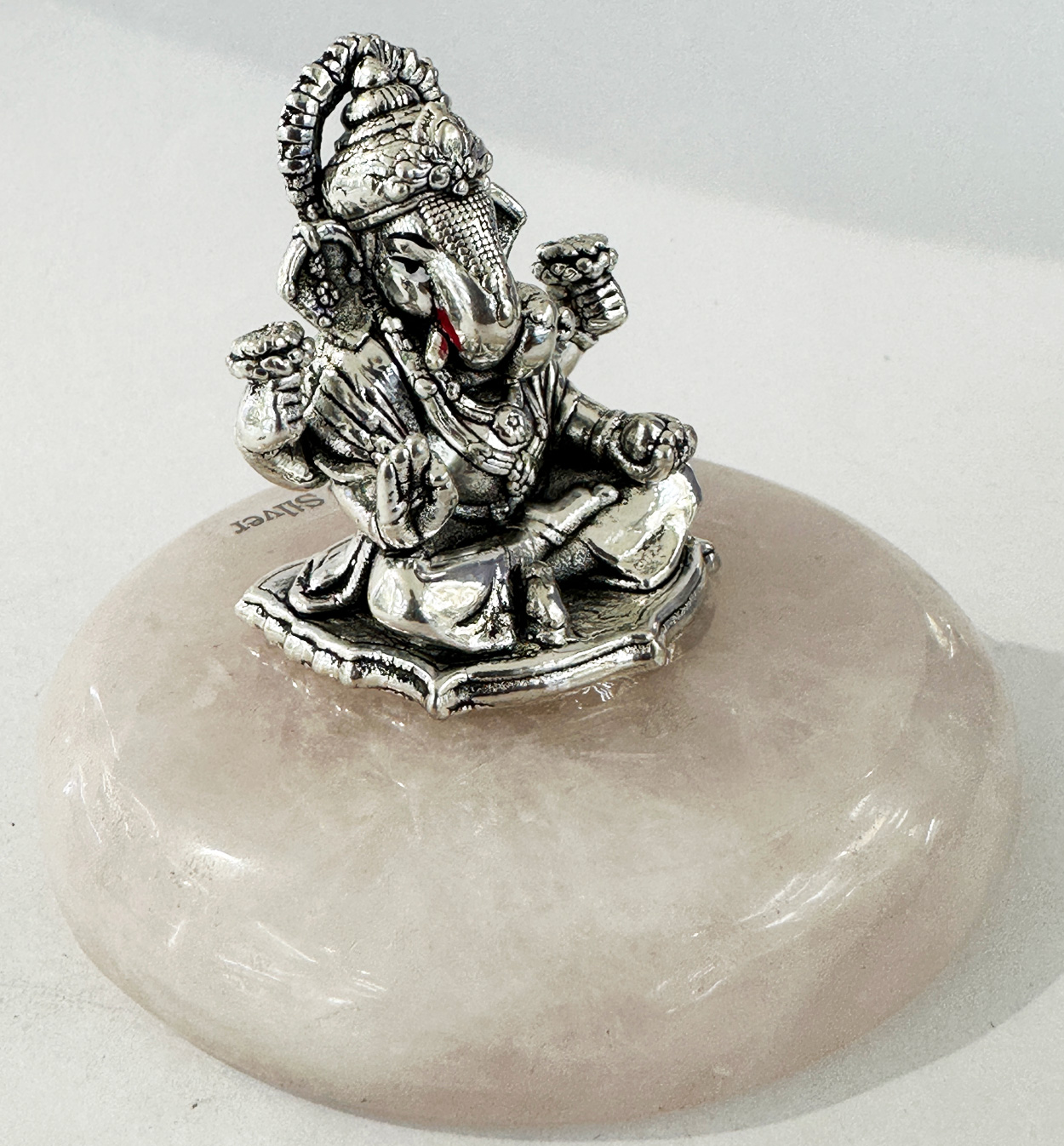 Be the first to review “Artistic Pure Silver Ganesh on Rose Quartz base | 2″ Ht.”