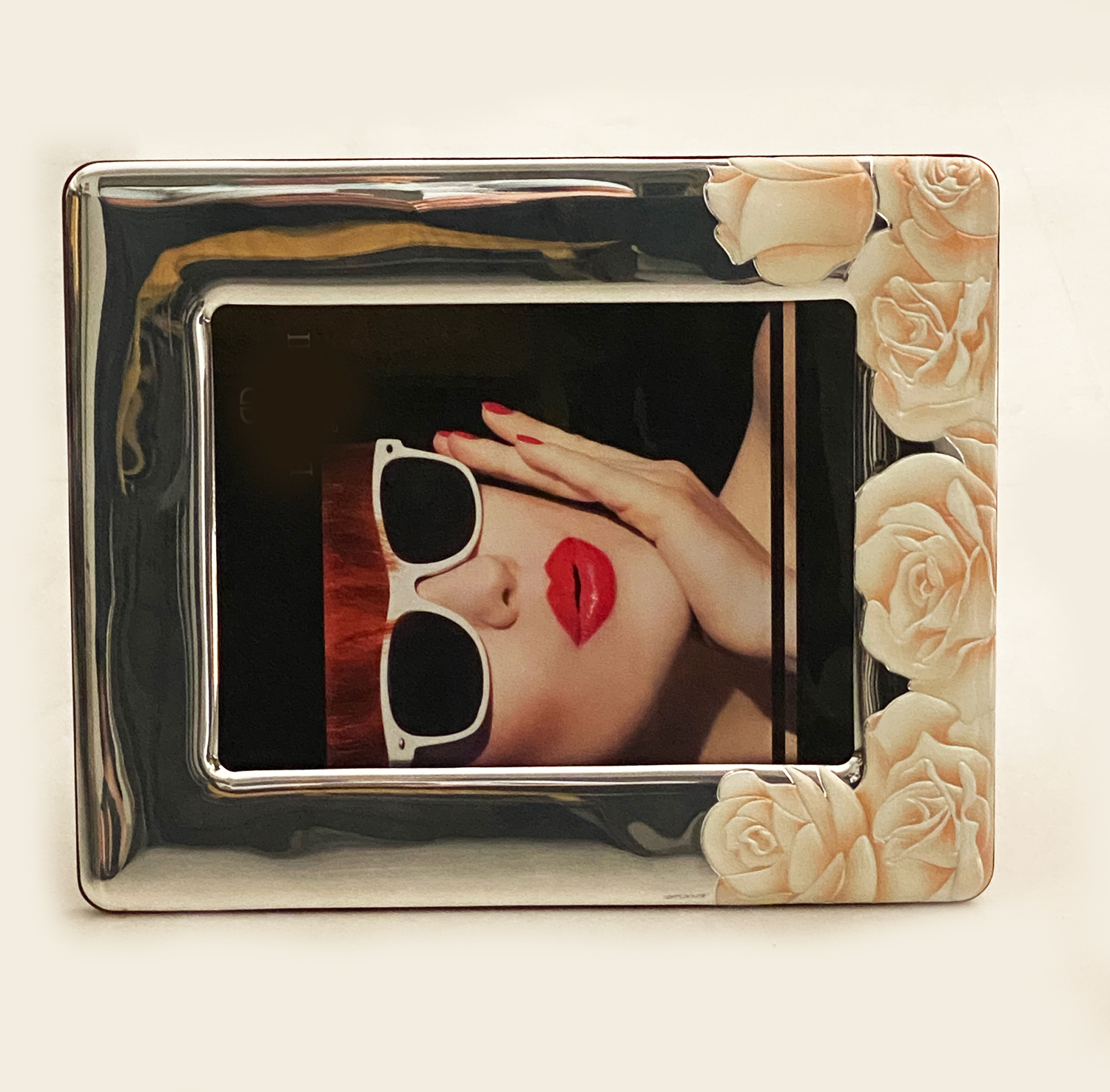 | Gorgeous, artistic, fine flowers silver photo frame in 925 sterling silver with a high quality lacquered wood back. Photo size – 18×24 cm