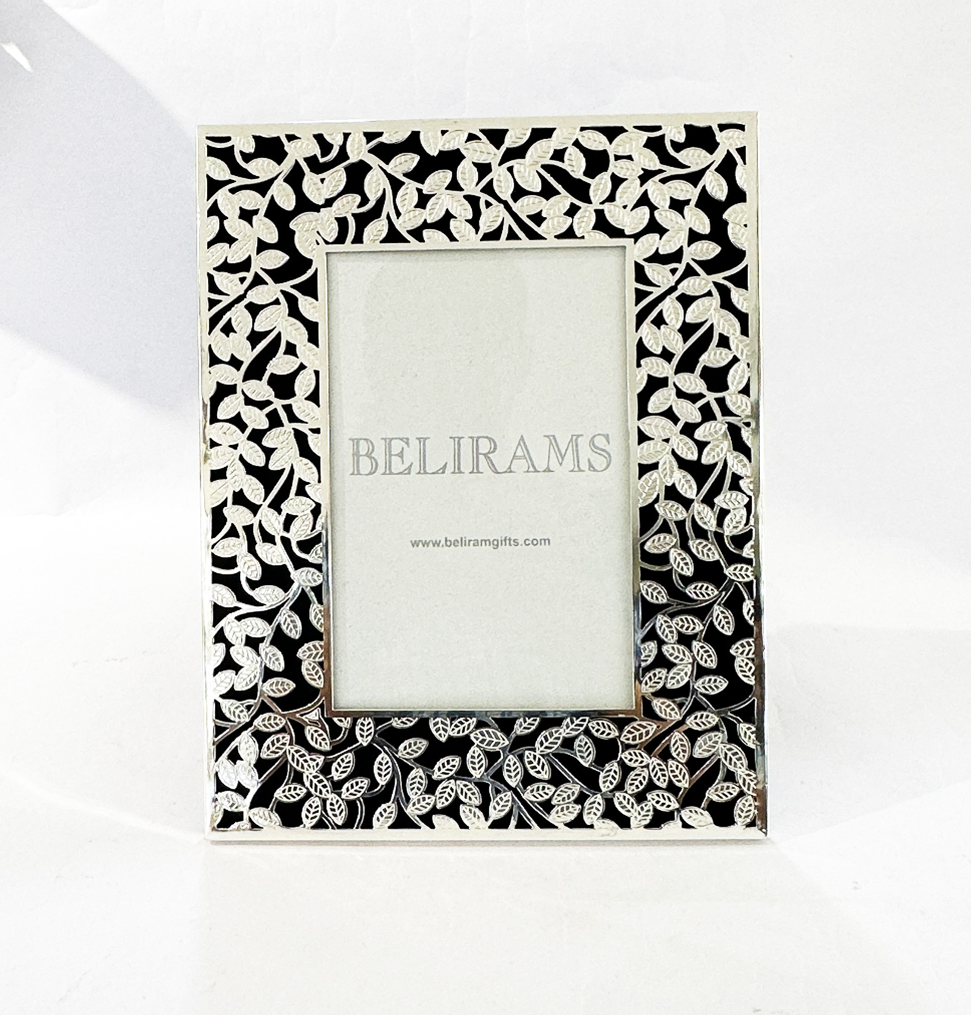 Artistic, pierced and embossed silver plated Photo Frame in high polish anti tarnish finish. Photo size – 4×6 inch with lacquered wood back.