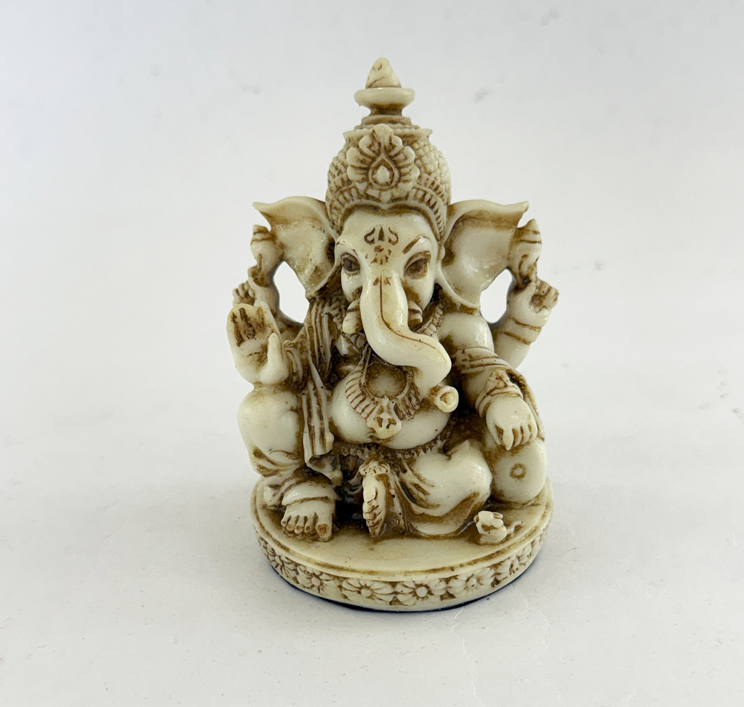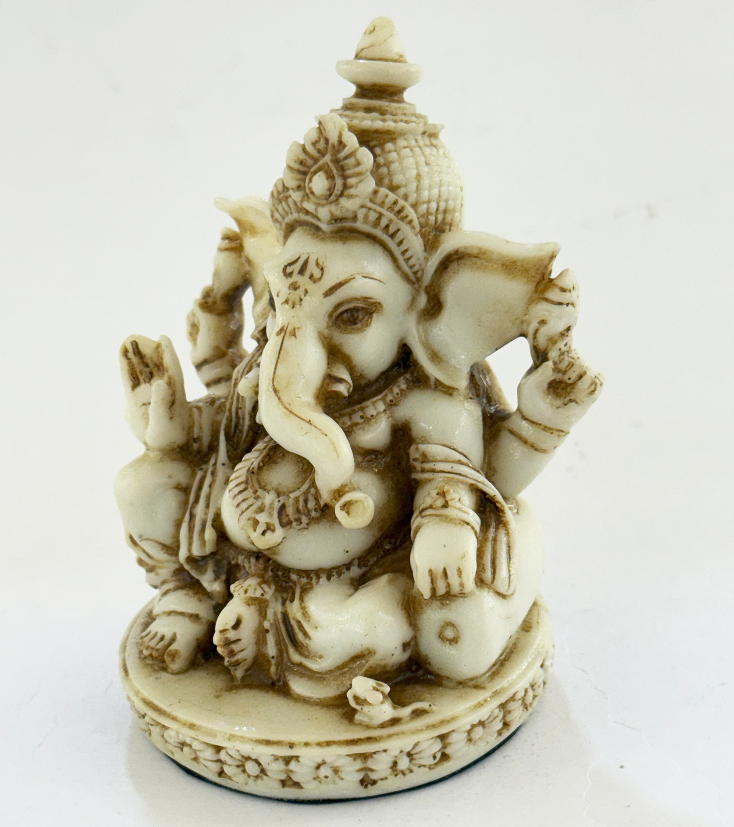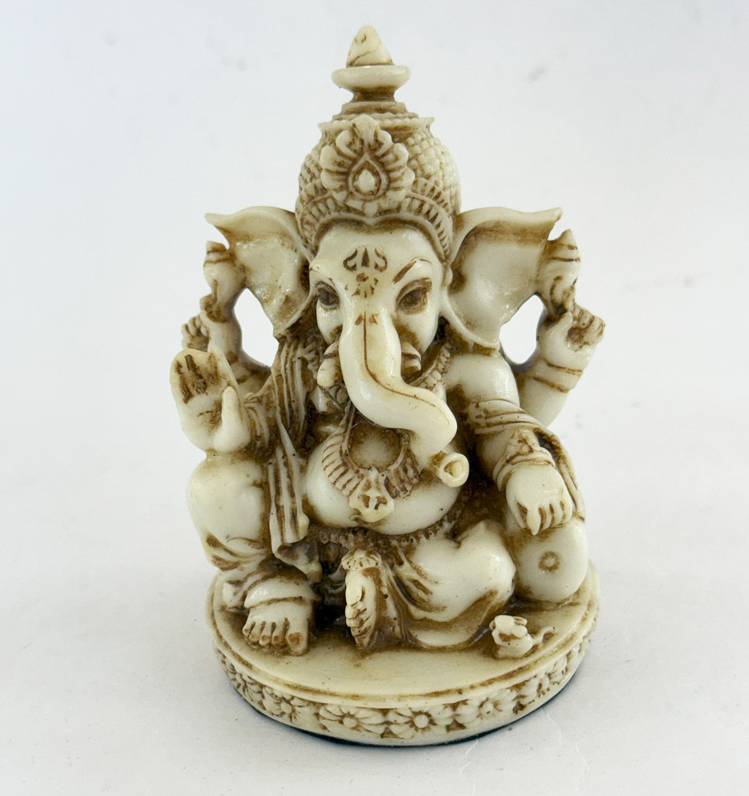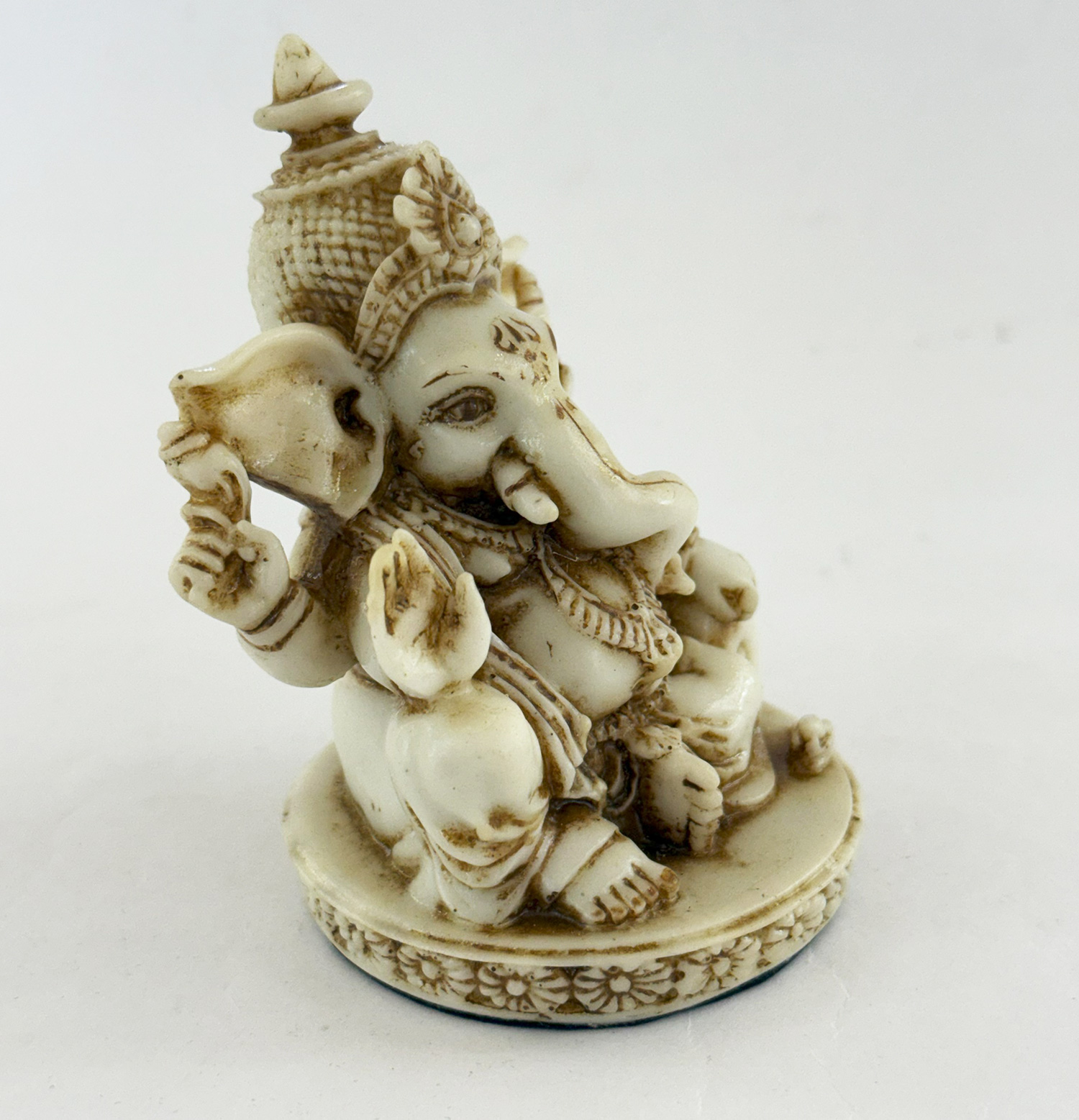 A Mini Mukut Ganesha Statue in Ivory Look | 3.5 inch Ht.