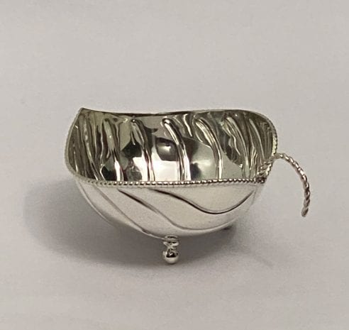 Beautiful, handcrafted and fluted pure silver bowl with handle. Size: 4″ dia