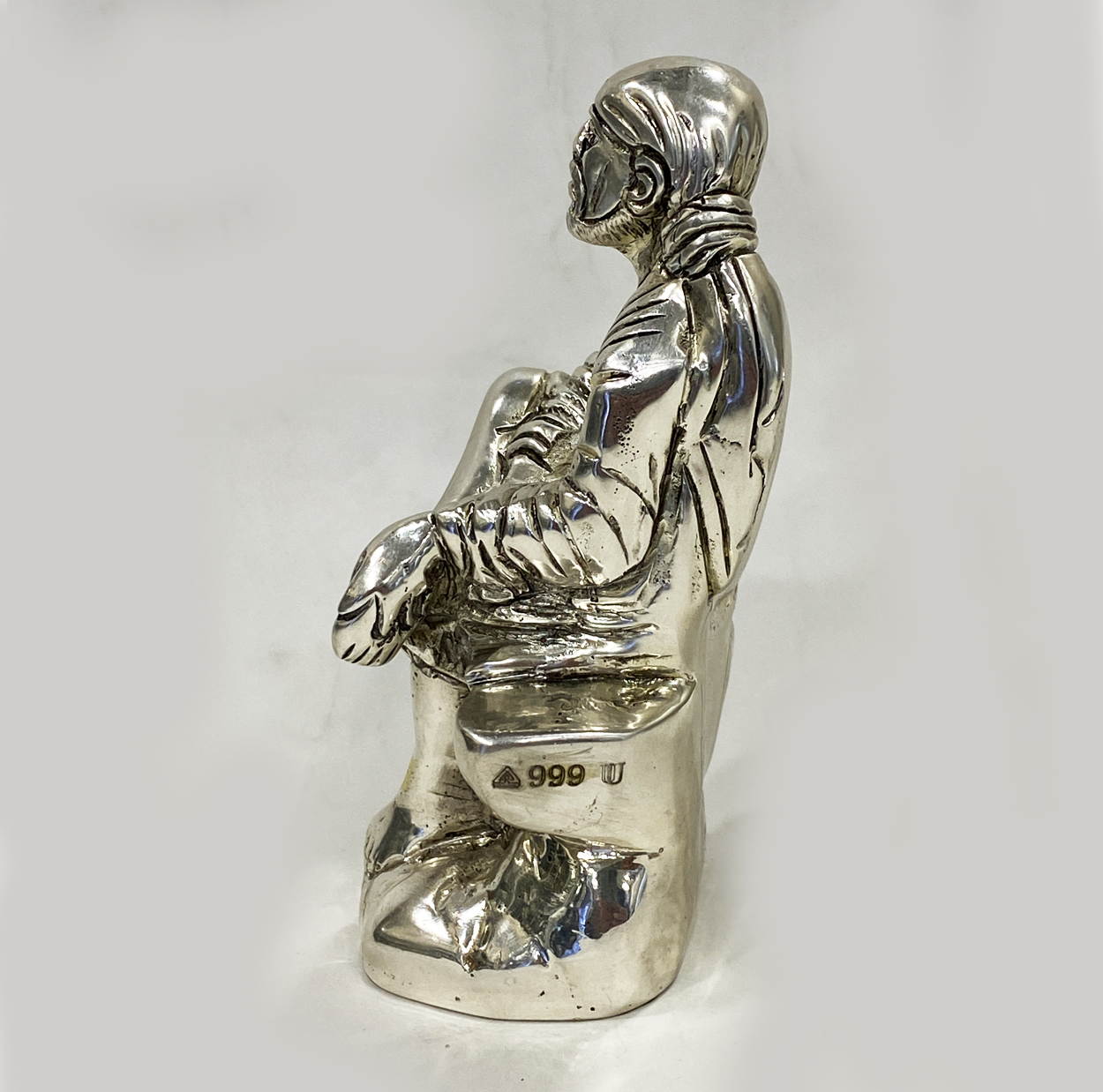 Gorgeous and artistic reproduction of a pure silver Sai Baba idol in 92.5% Pure Silver in antique finish. Size: 3.2″ height and 520 gms weight