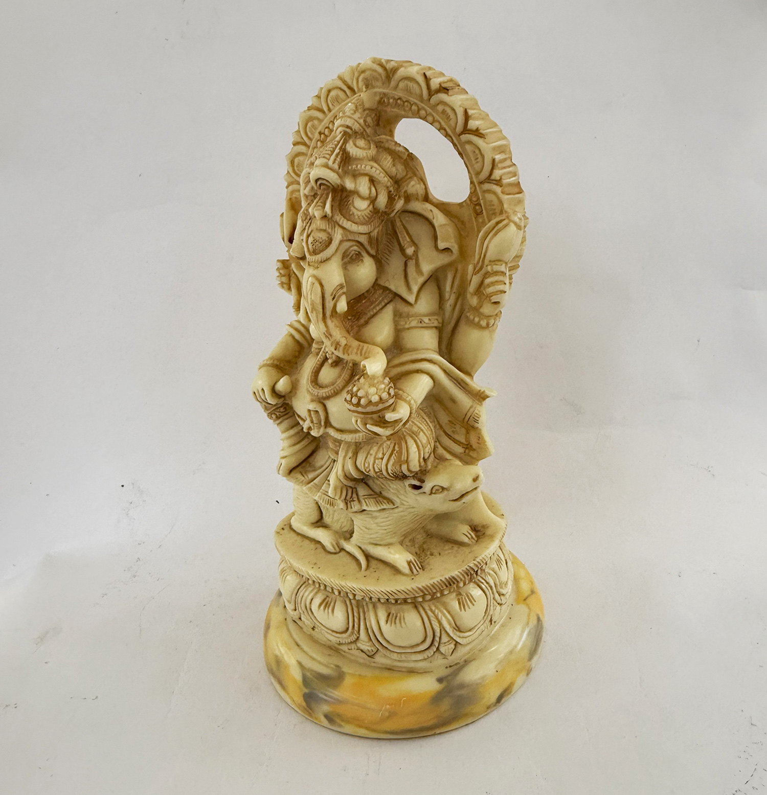 Artistic Carved Ganesha Statue in Ivory Look | 10.2 inch Ht.