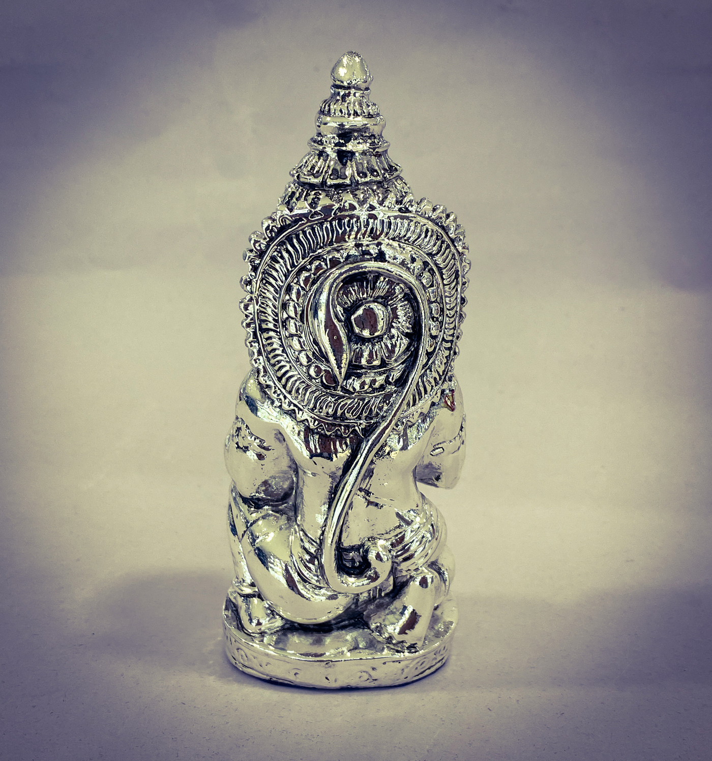 RESIN SILVER – This term is used for items which are layered outside with silver sheet and filled inside with Non Metallic Organic substance. Buy this sitting silver Hanuman which is in Anti-Tarnish Cote and have a very enduring and lasting finish.