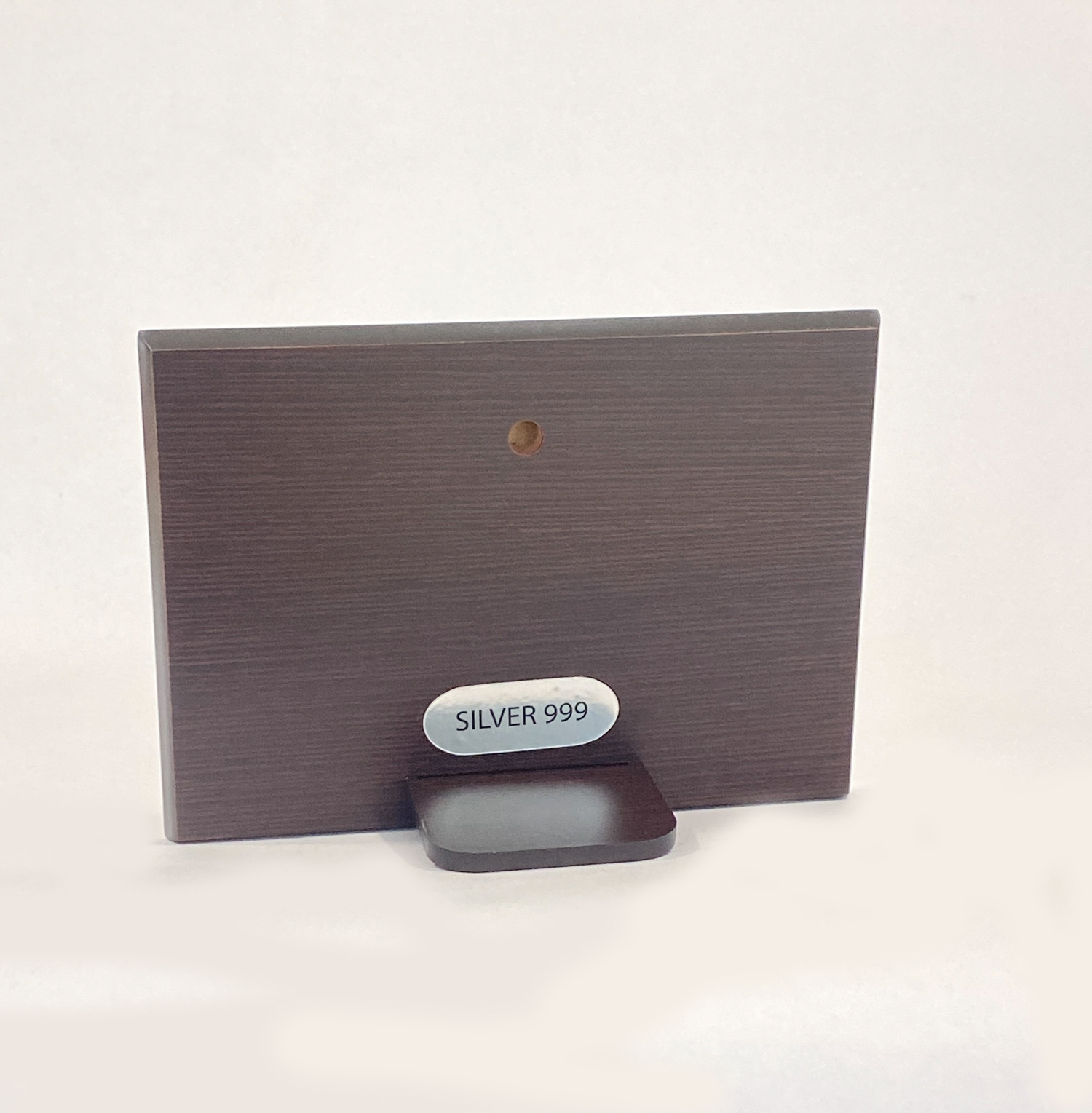 999 SILVER – This term in plaques and frames is used for items which have 999 silver sheet pasted on wood back. All these items are Anti-tarnish and have very enduring and lasting finish. This silver tabletop plaque of Ladoo Gopal is an ideal gift for Wedding, Anniversary or Corporate.