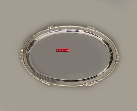 This silver plated oval Tray is handcrafted in a brass sheet, heavily silver plated and then given an high polish finish. Finally it is given an Anti – Tarnish cote for lasting and enduring use.