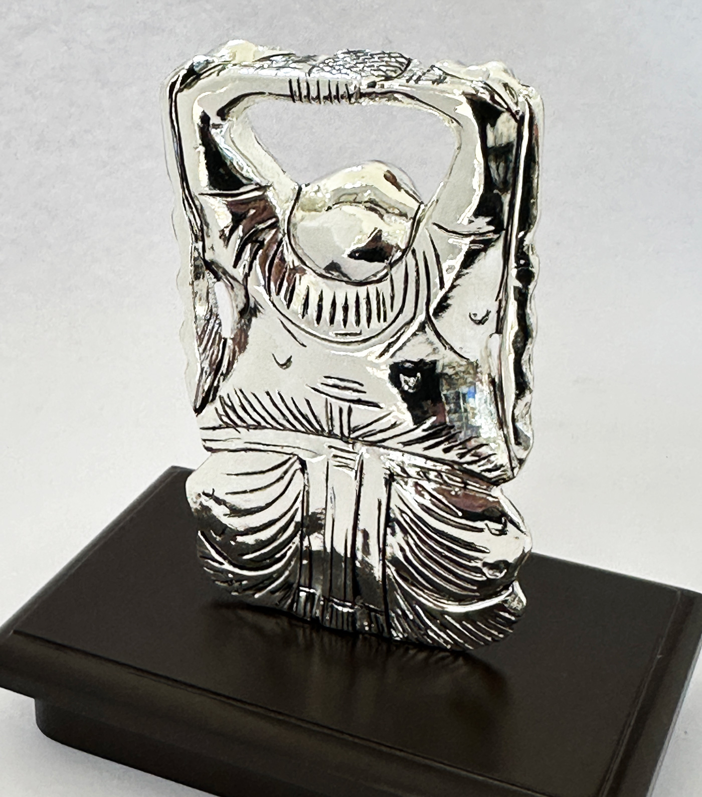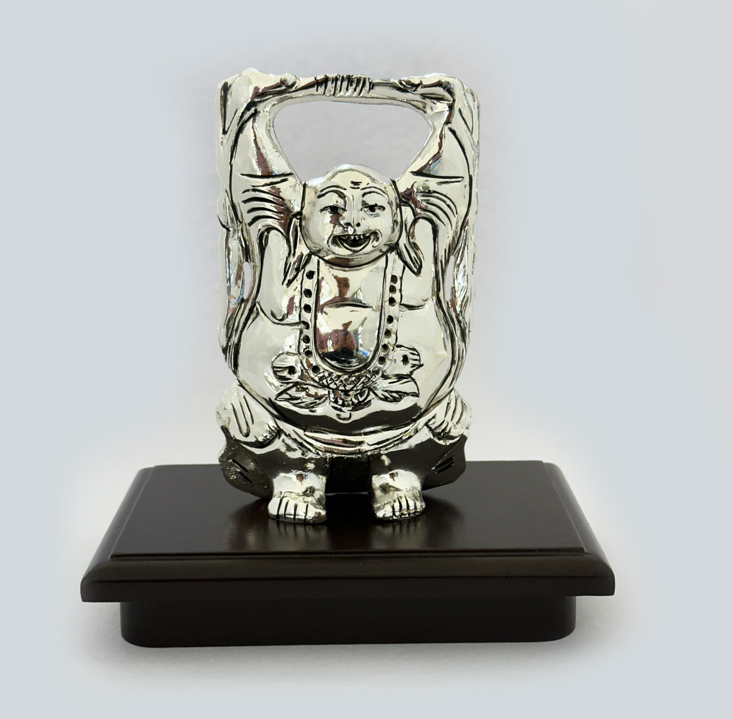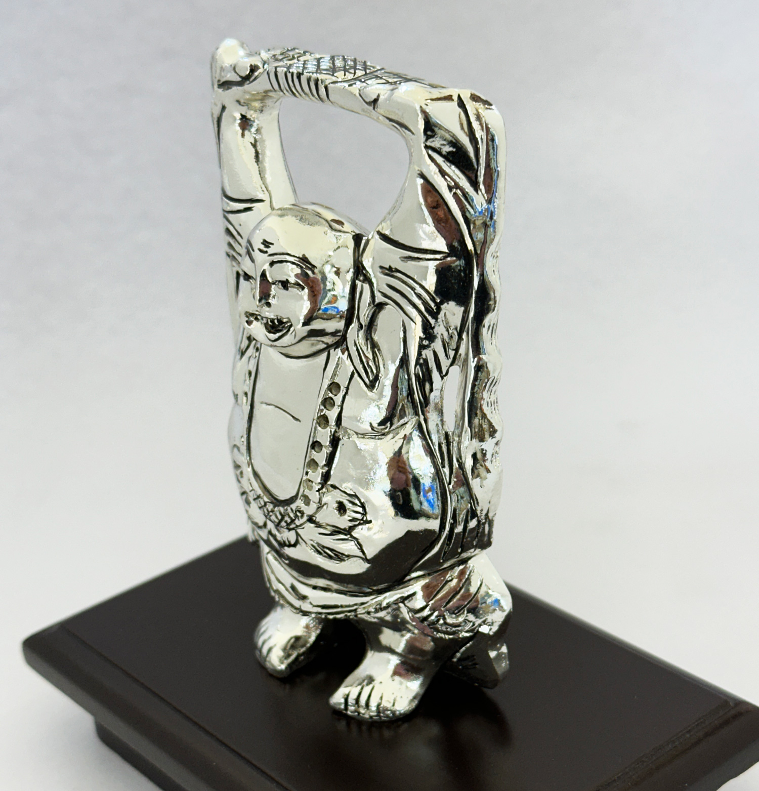 RESIN SILVER – This term is used for items which are layered from outside with silver sheet and filled inside with Non Metallic Organic substance. Buy this silver Laughing Buddha which is in Anti-tarnish cote and have a very enduring and lasting finish.